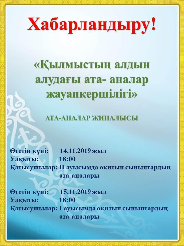 «Баланы жеке үлгі ретінде тәрбиелеу» атты жалпы ата-аналар жиналысы