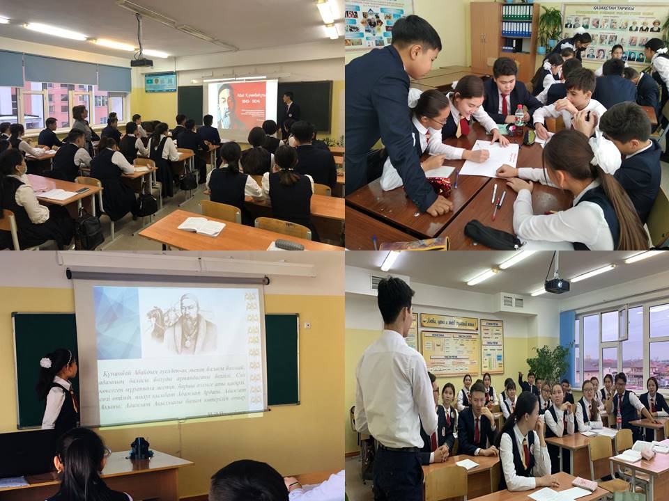 Сабақ сонында оқушылар Абай Құнанбаев туралы сұрақтар қойып, сабақ қызу пікір-таласқа айналды.