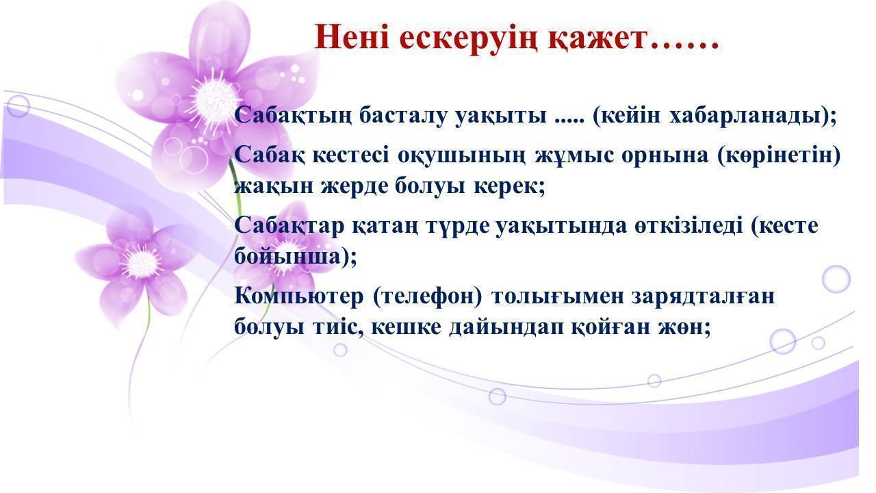 Құрметті оқушылар! Ертең 03.04.2020ж. Алматы қаласы Алатау ауданы №178 лицейде "Мен қашықтықтан қалай оқимын?" және "Өзіңді вирустық аурудан қалай сақтауға болады?" тақырыптарында бірыңғай республикалық онлайн режимінде сынып жиналысы (тәрбие сағаты) өткізіледі. Сыныптар үшін өткізілетін уақыт: