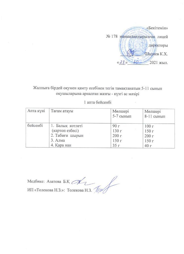 Ас мәзірі - 28.10.2021 жыл