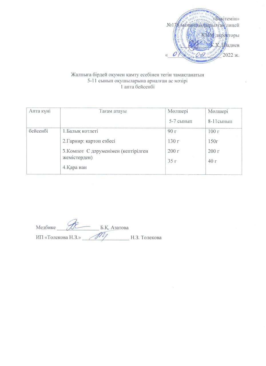 Ас мәзірі - 01.09.2022 жыл