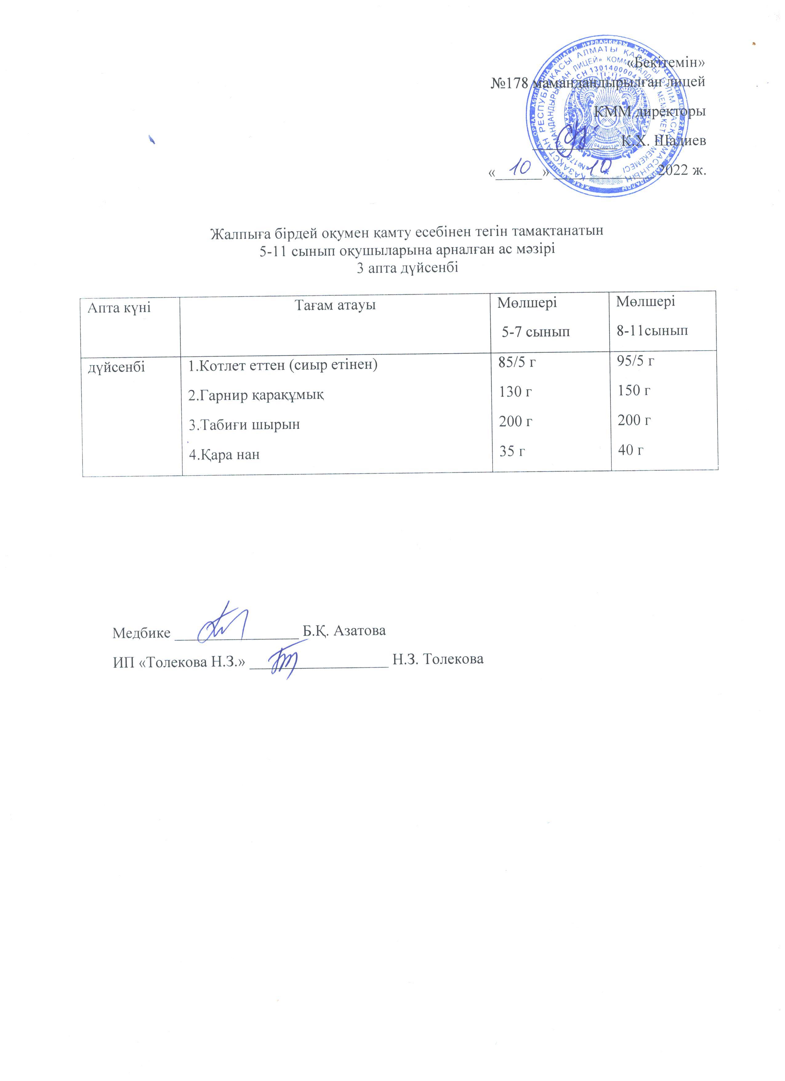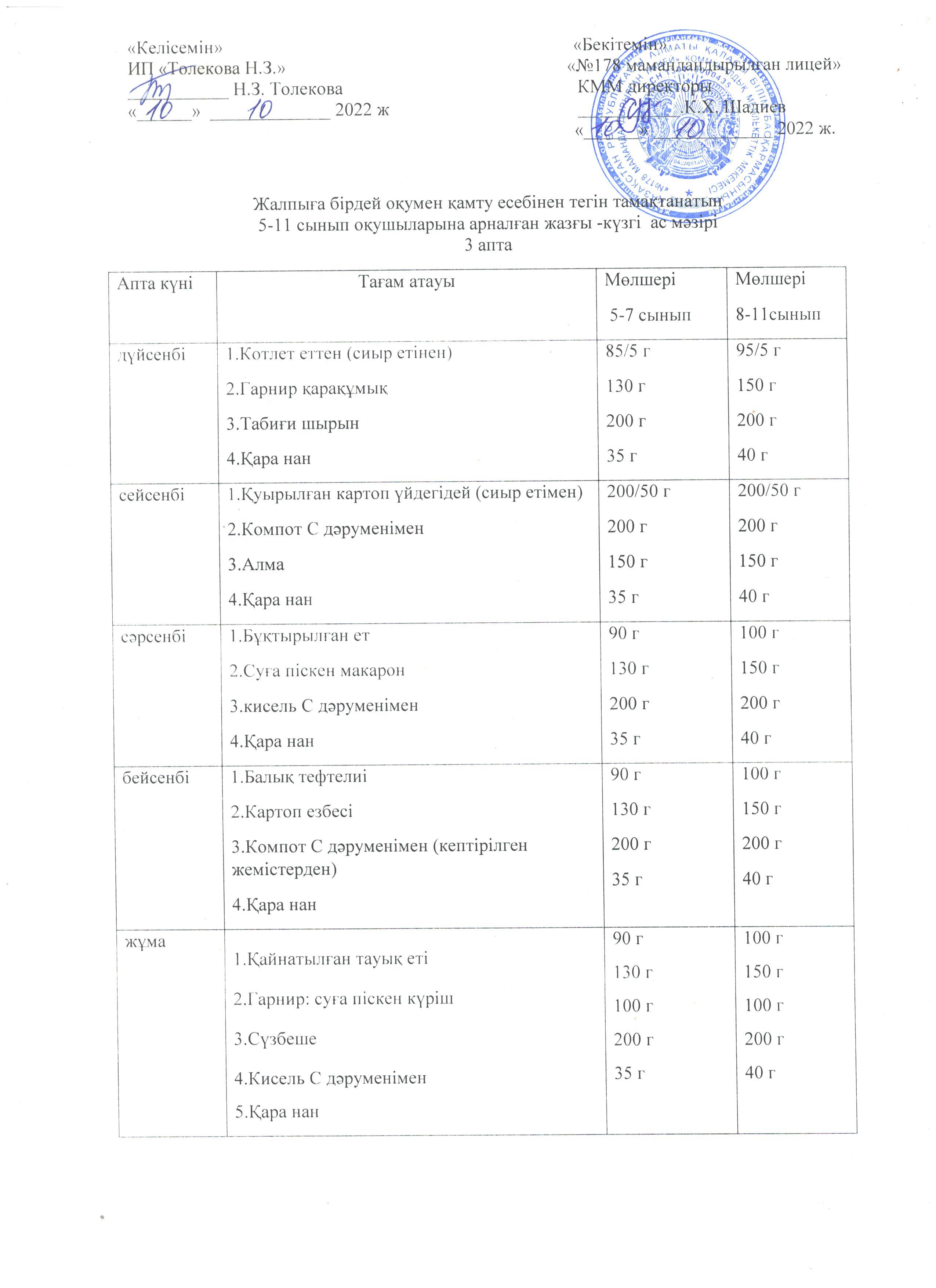 Ас мәзірі - 10.10.2022 жыл