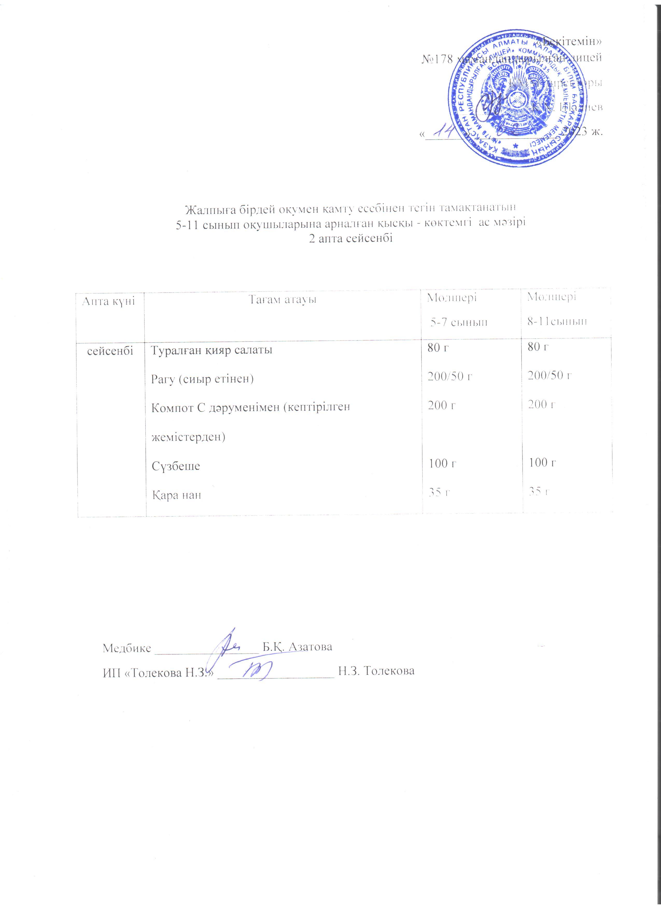 Ас мәзірі - 09.02.2023 жыл