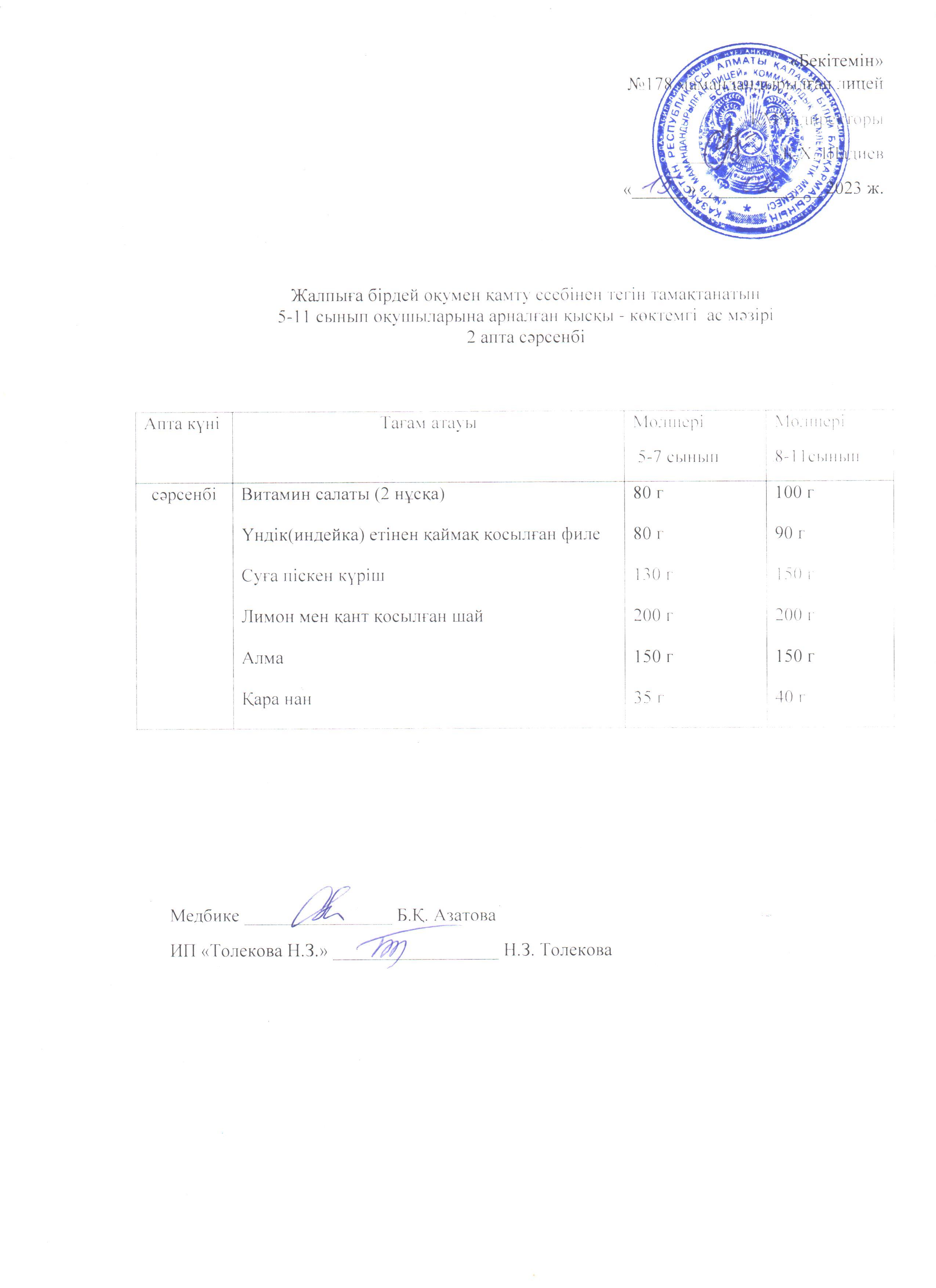 Ас мәзірі - 09.02.2023 жыл