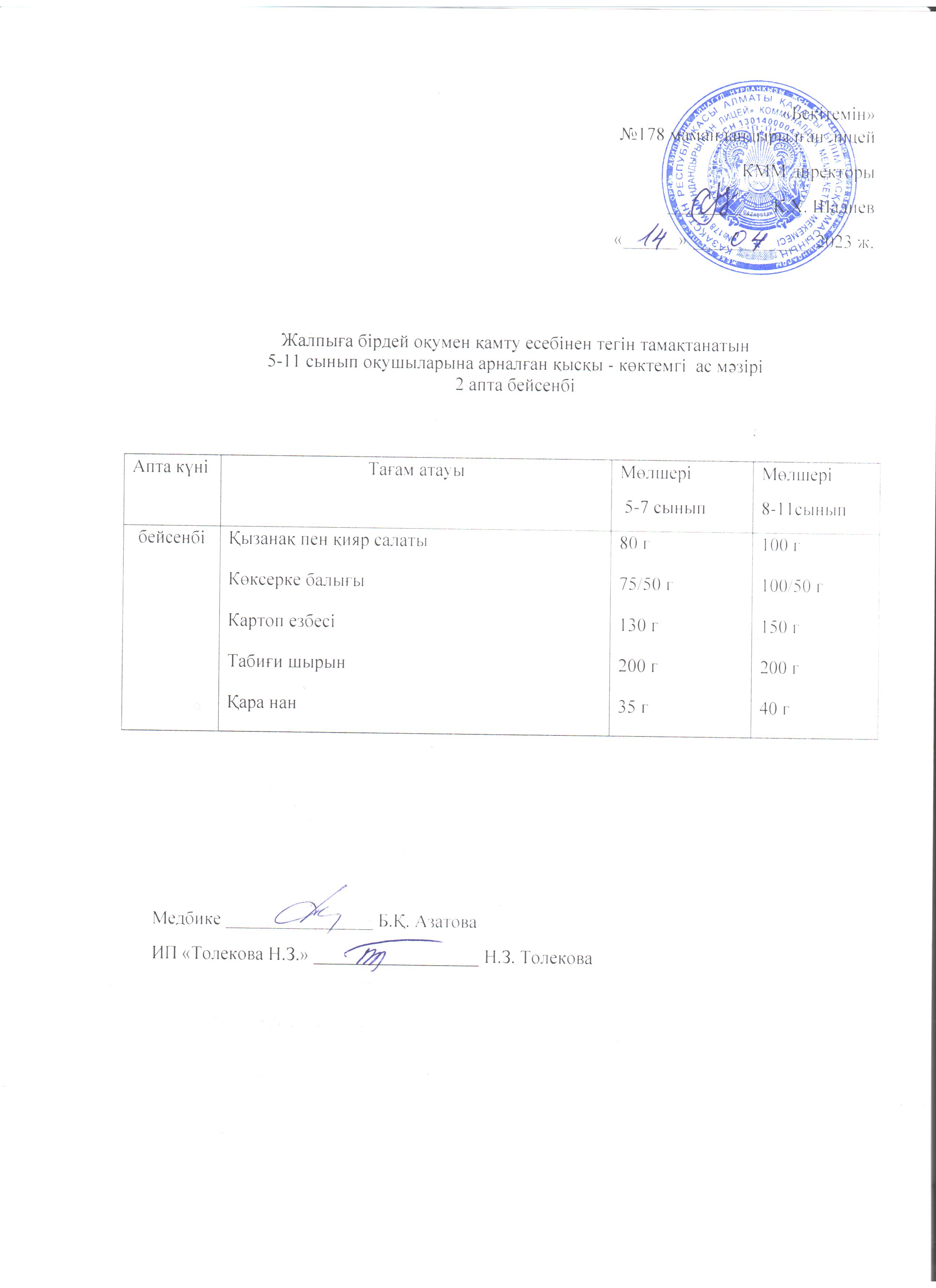 » Ас мәзірі - 13.04.2023 жыл