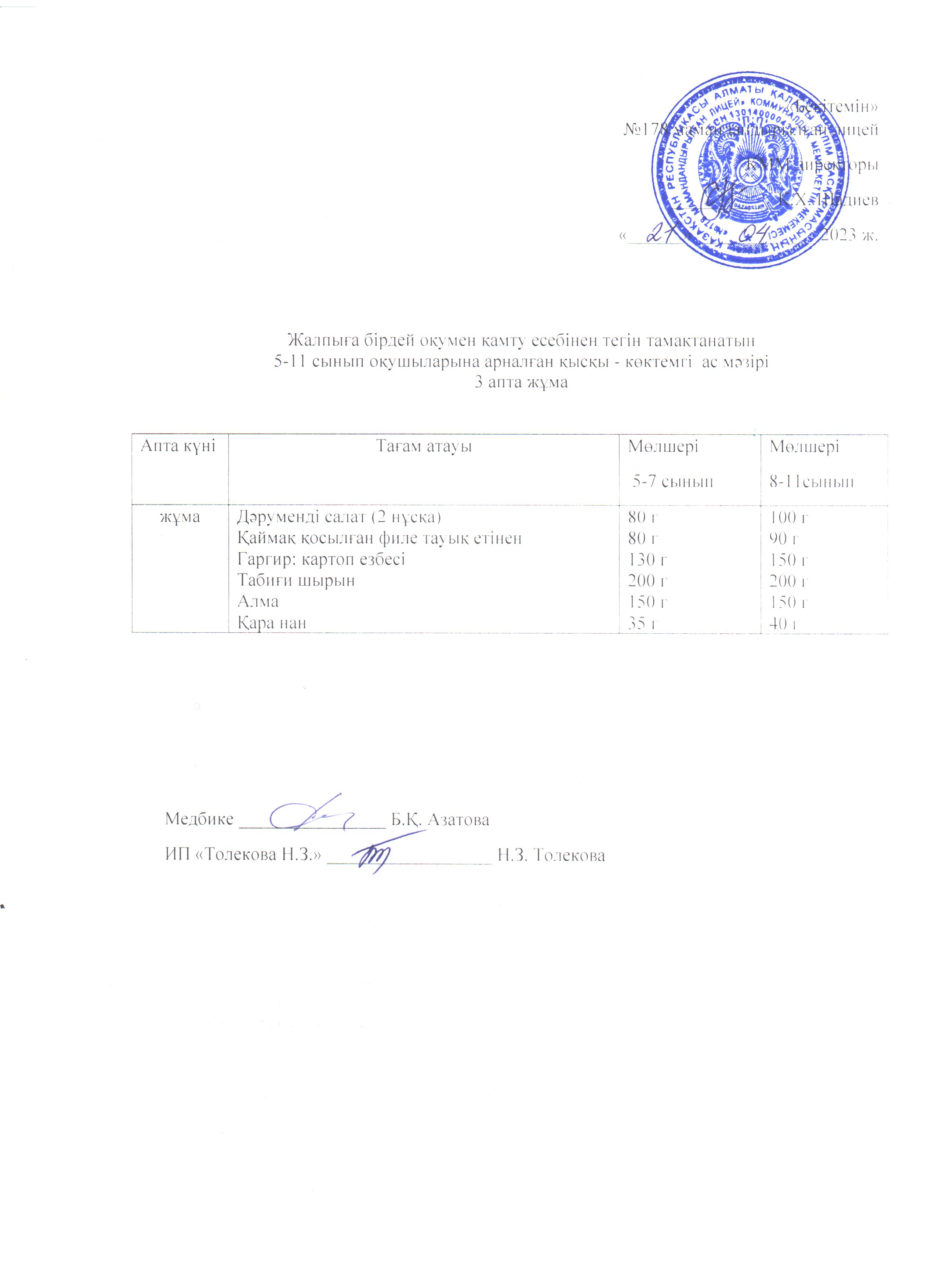 Ас мәзірі - 21.04.2023 жыл