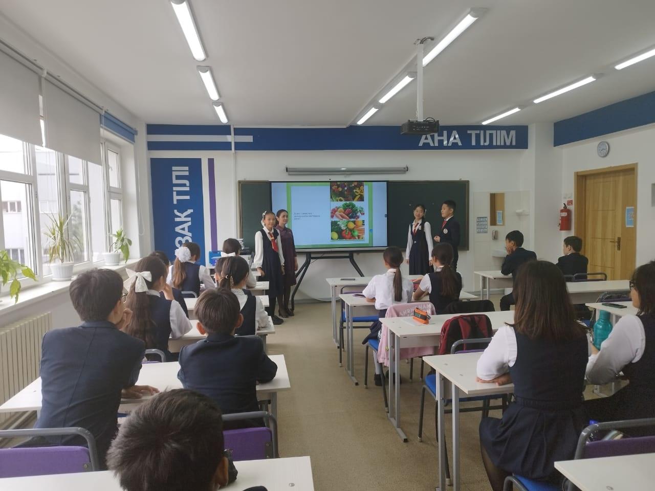 23 май 2023 0 1 2 3 4 5 Дұрыс тамақтану - денсаулық кепілі 23 мамыр күні №178 мамандандырылған лицейде 6 - 7 сынып оқушыларымен "Дұрыс тамақтану" тақырыбында сынып сағаттары өткізілді. Мақсаты: оқушыларға "Дұрыс тамақтану" ұғымын түсіндіру, пайдалы және зиянды тағамдарды ажырата білуге үйрету, салауатты өмір салтын насихаттау. Осы беттің QR-коды:QR-код этой страницы: