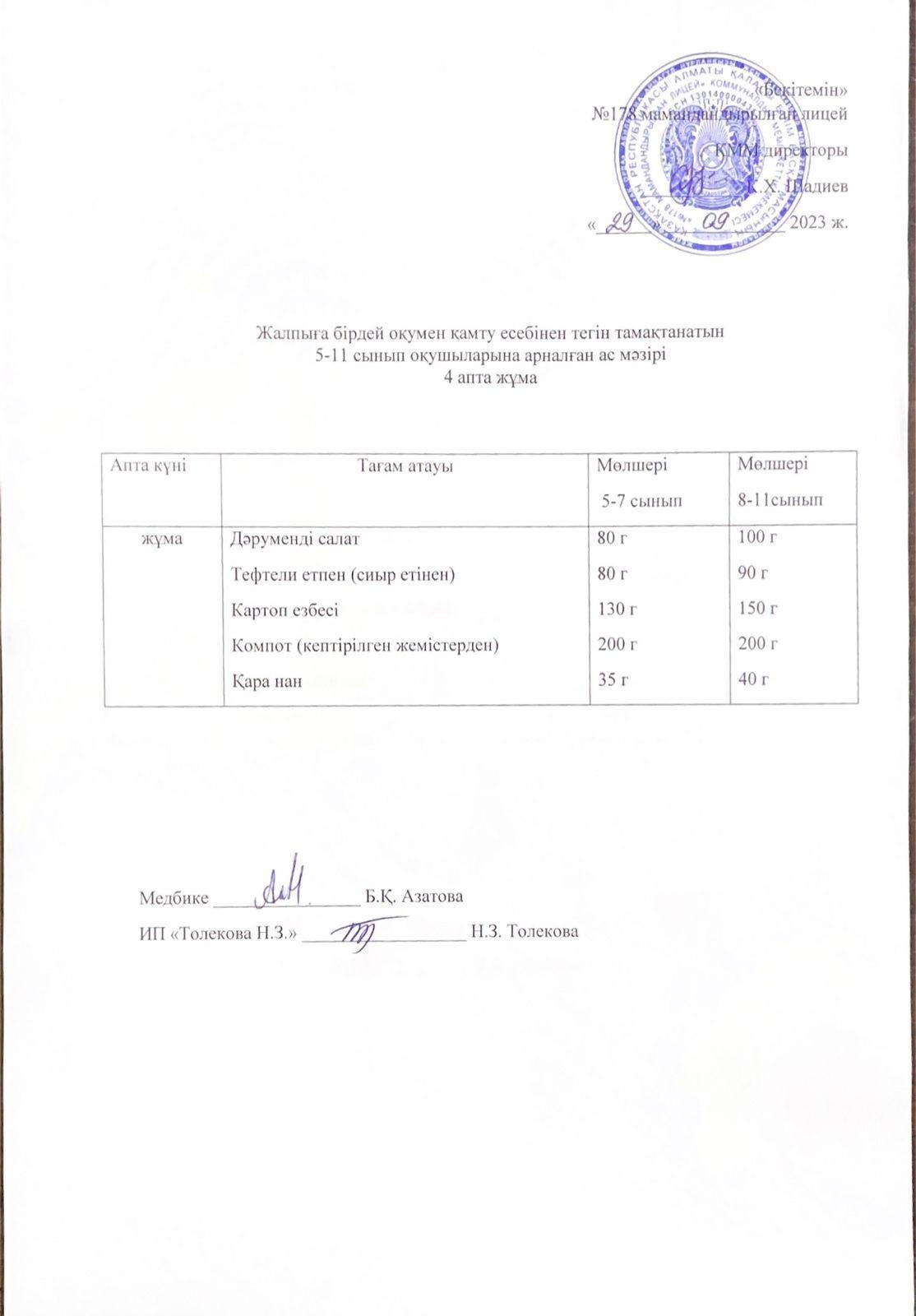 Ас мәзірі - 29.09.2023 жыл