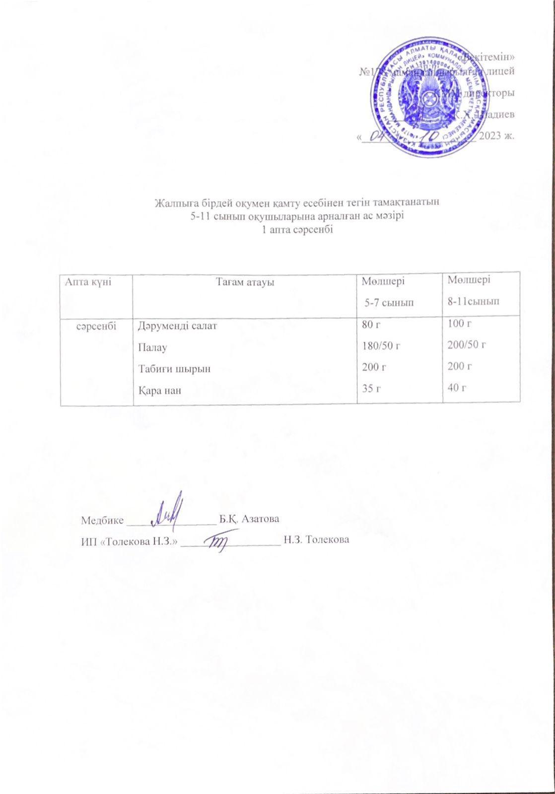 Ас мәзірі - 04.10.2023 жыл