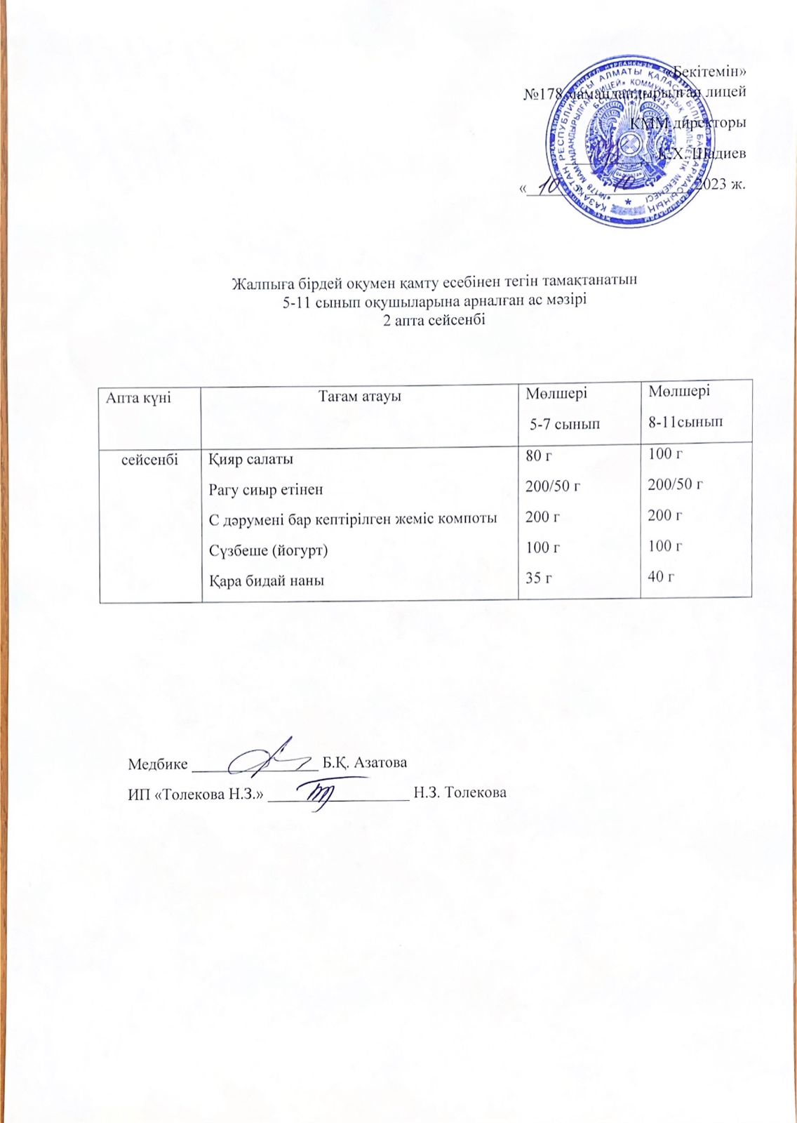 Ас мәзірі - 10.10.2023 жыл