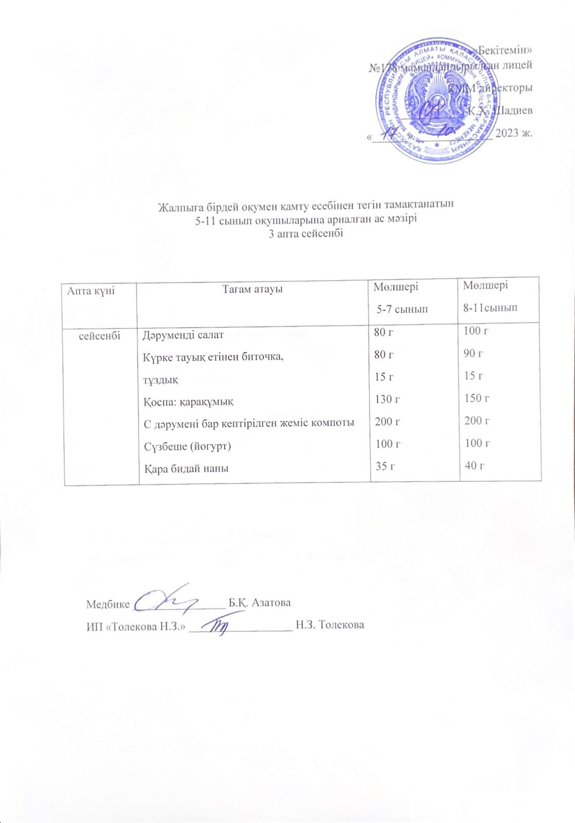 Ас мәзірі - 17.10.2023 жыл