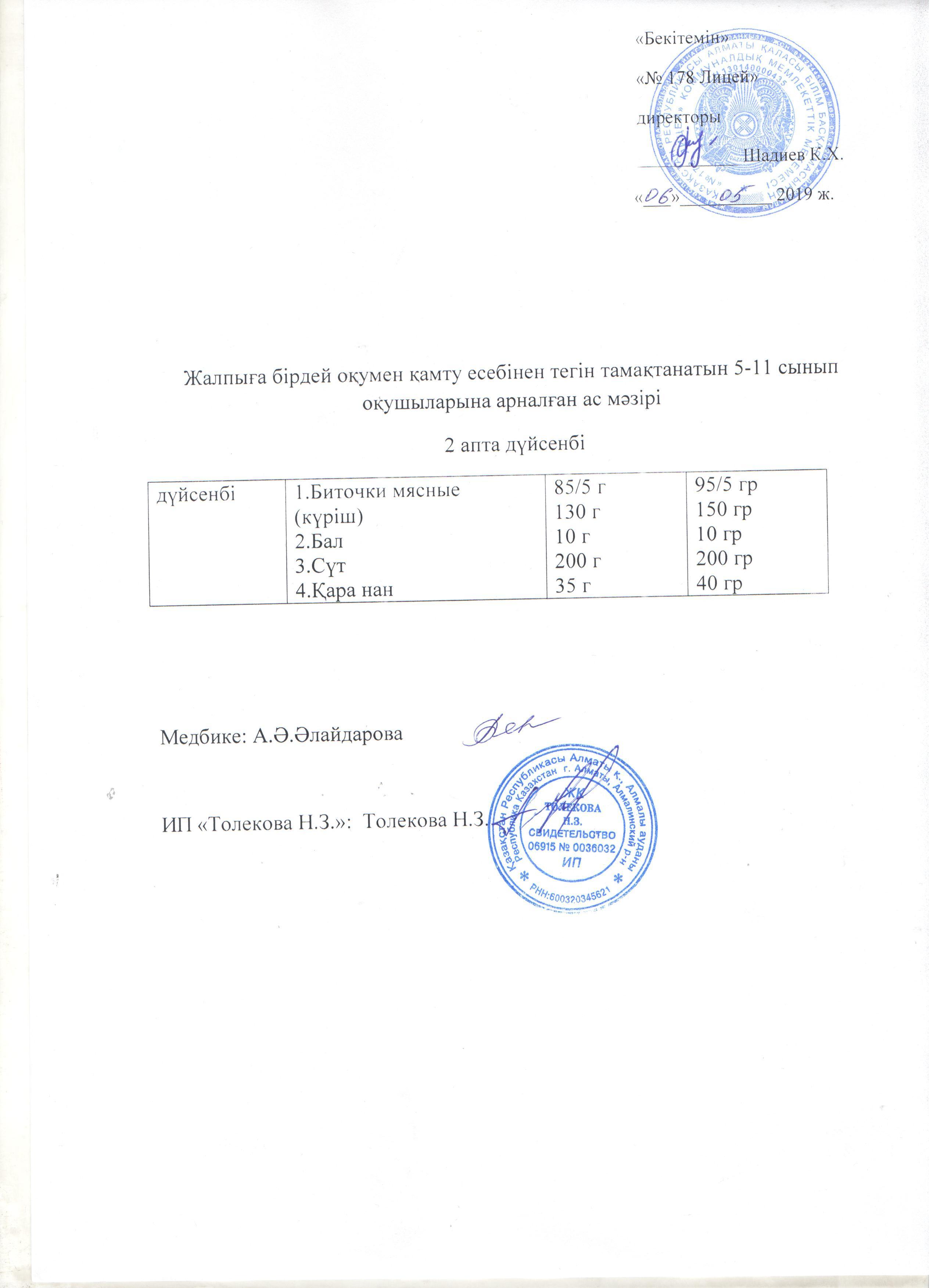 Ас мәзірі - 06.05.2019 жыл