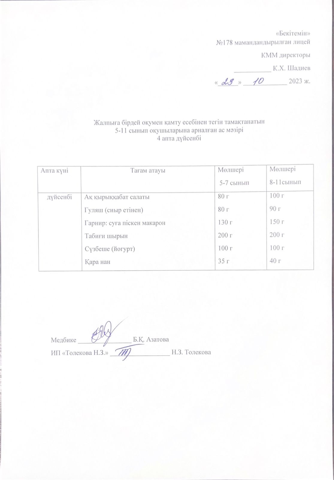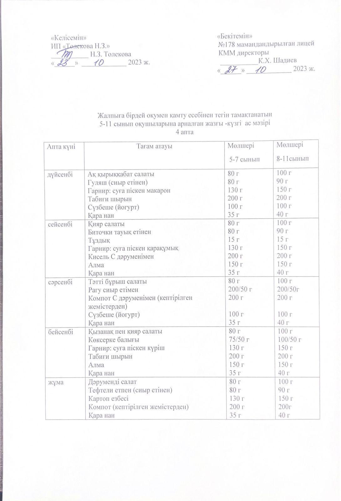 Ас мәзірі - 23.10.2023 жыл
