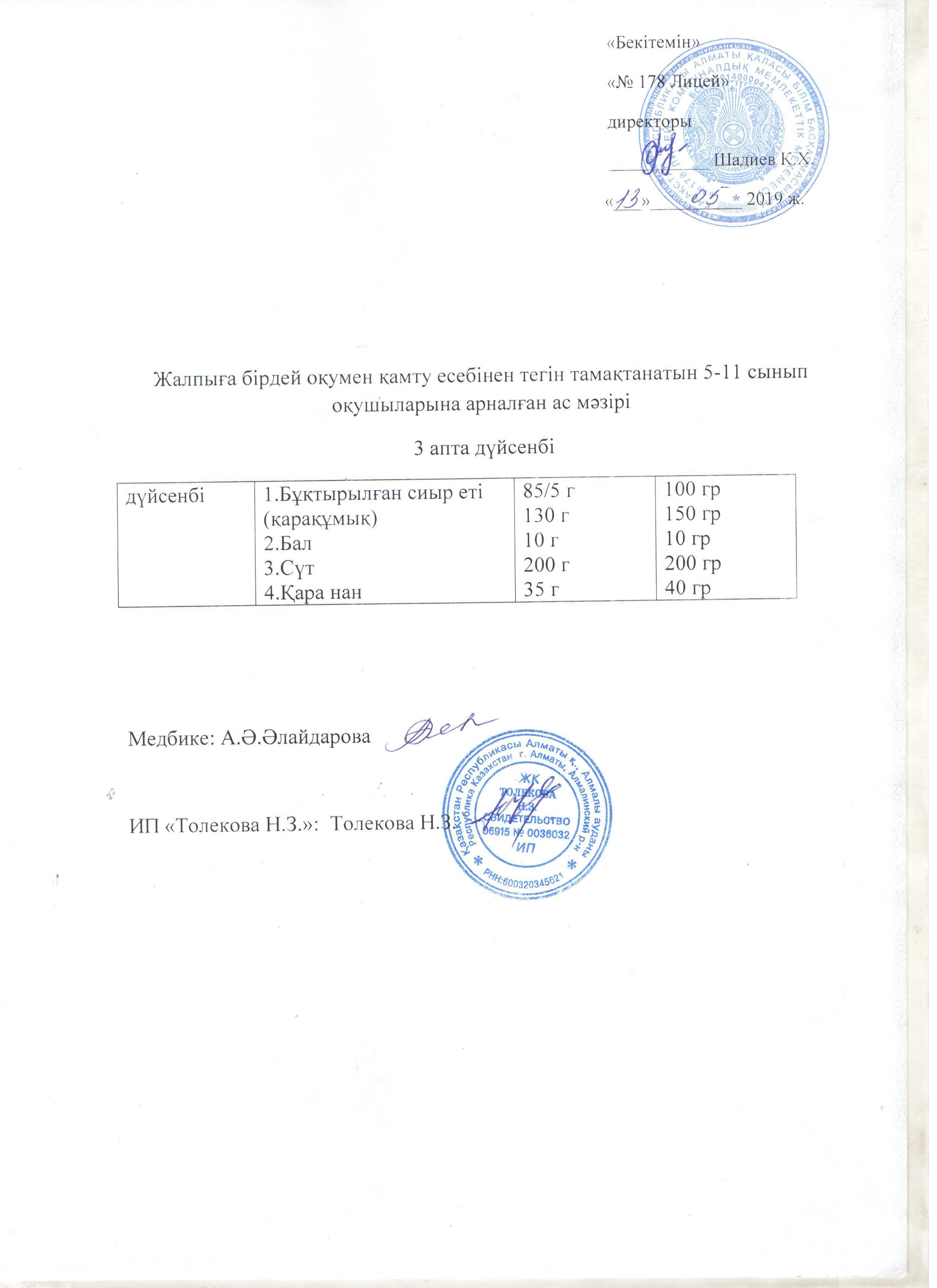 Ас мәзірі - 13.05.2019 жыл