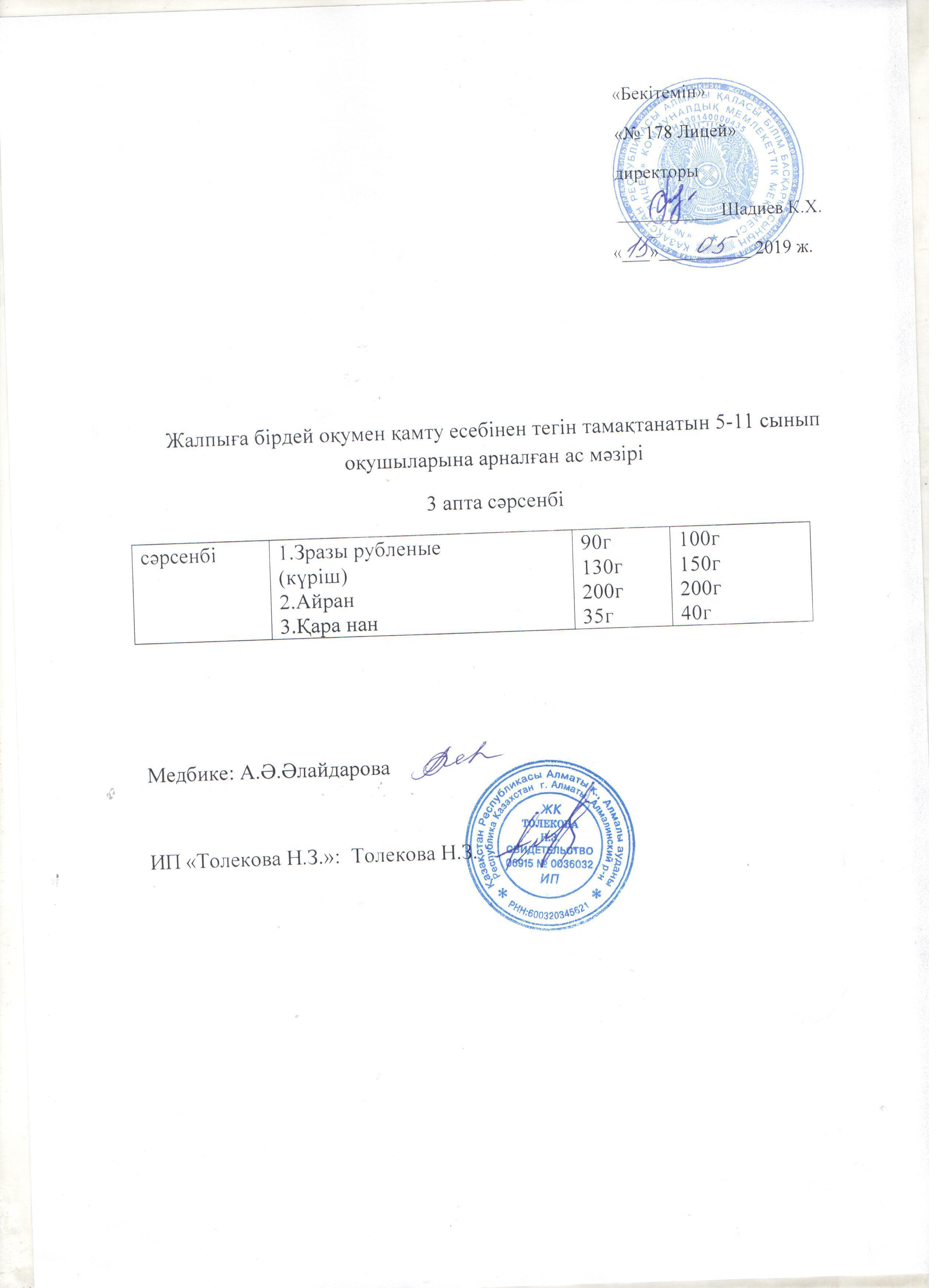 Ас мәзірі - 15.05.2019 жыл