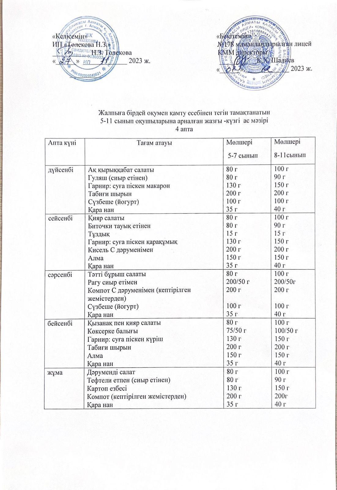 Ас мәзірі - 23.11.2023 жыл