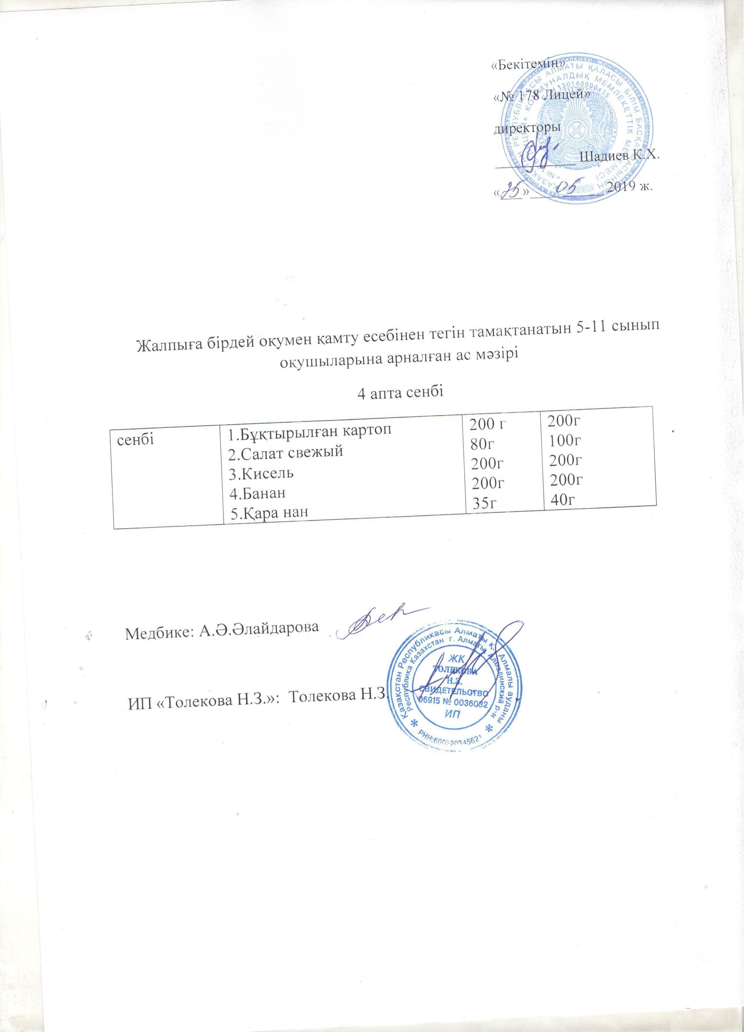Ас мәзірі - 25.05.2019 жыл