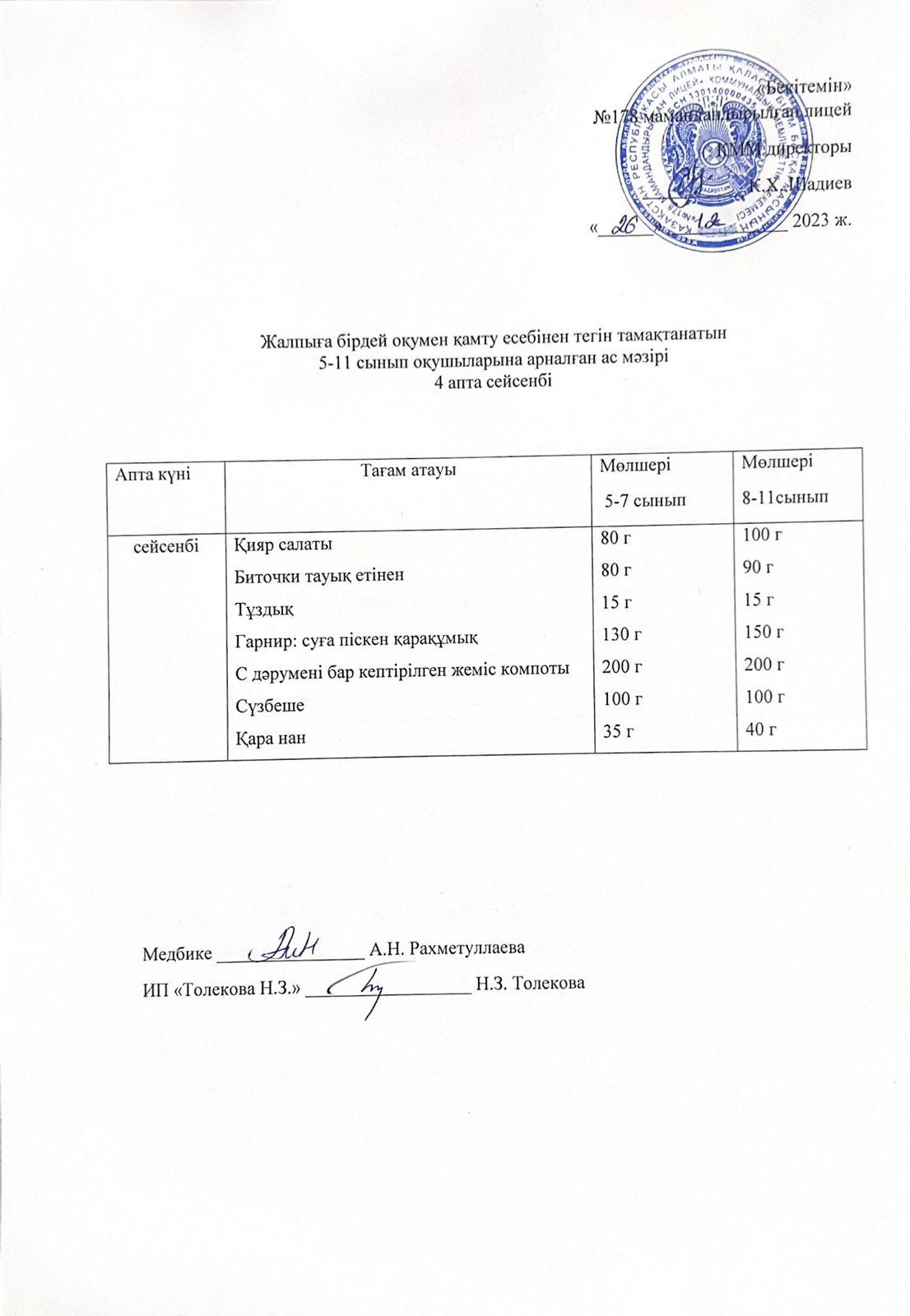 Ас мәзірі - 23.11.2023 жыл