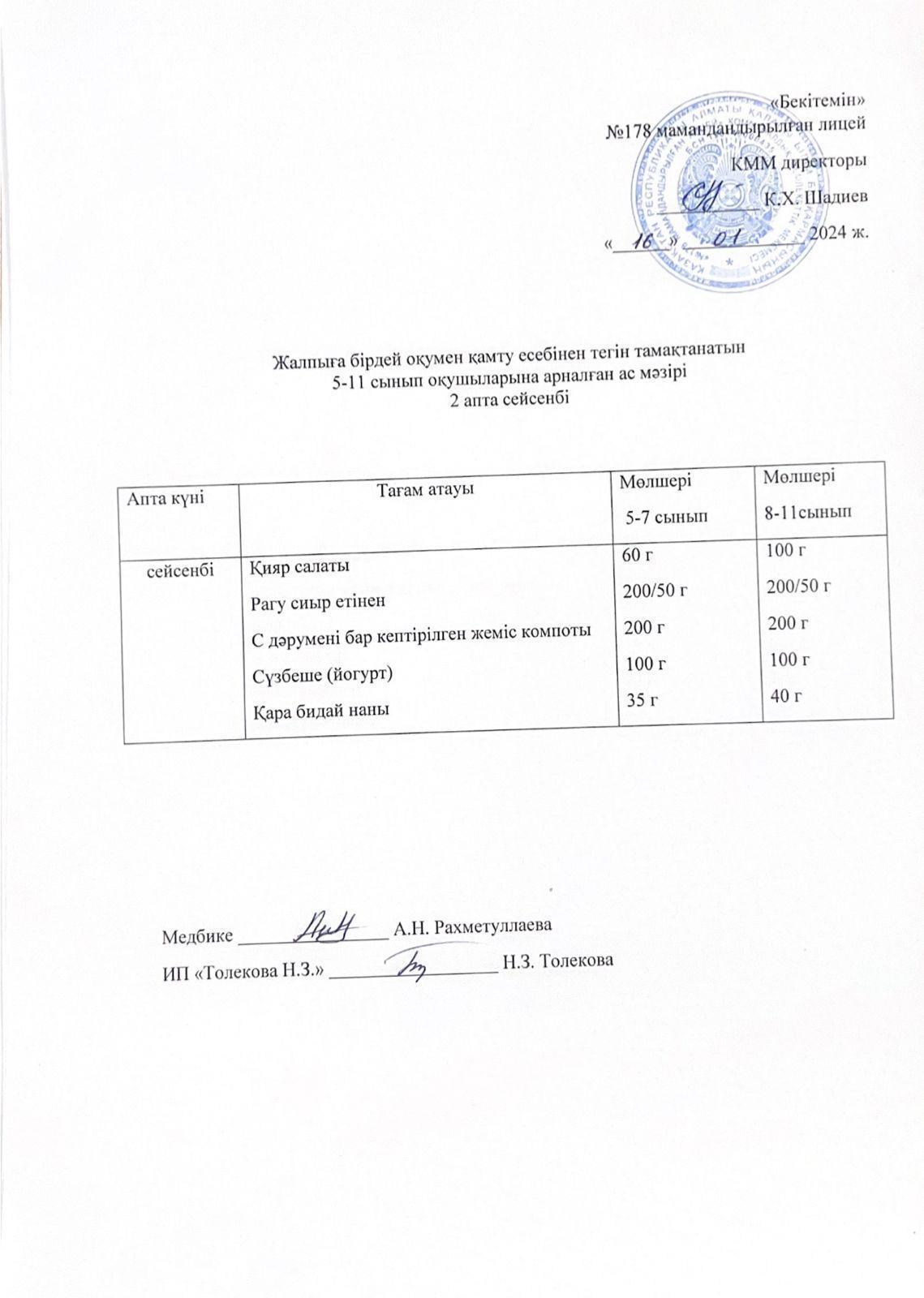 Ас мәзірі - 16.01.2024 жыл