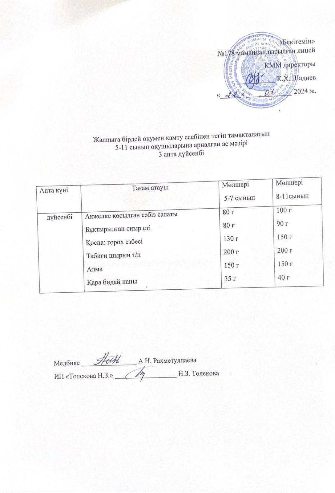 Ас мәзірі - 11.01.2024 жыл