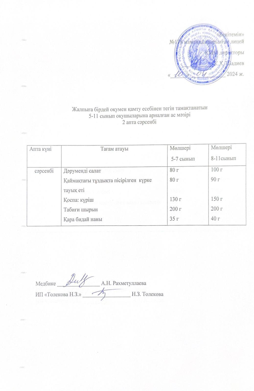 Ас мәзірі - 10.04.2024 жыл