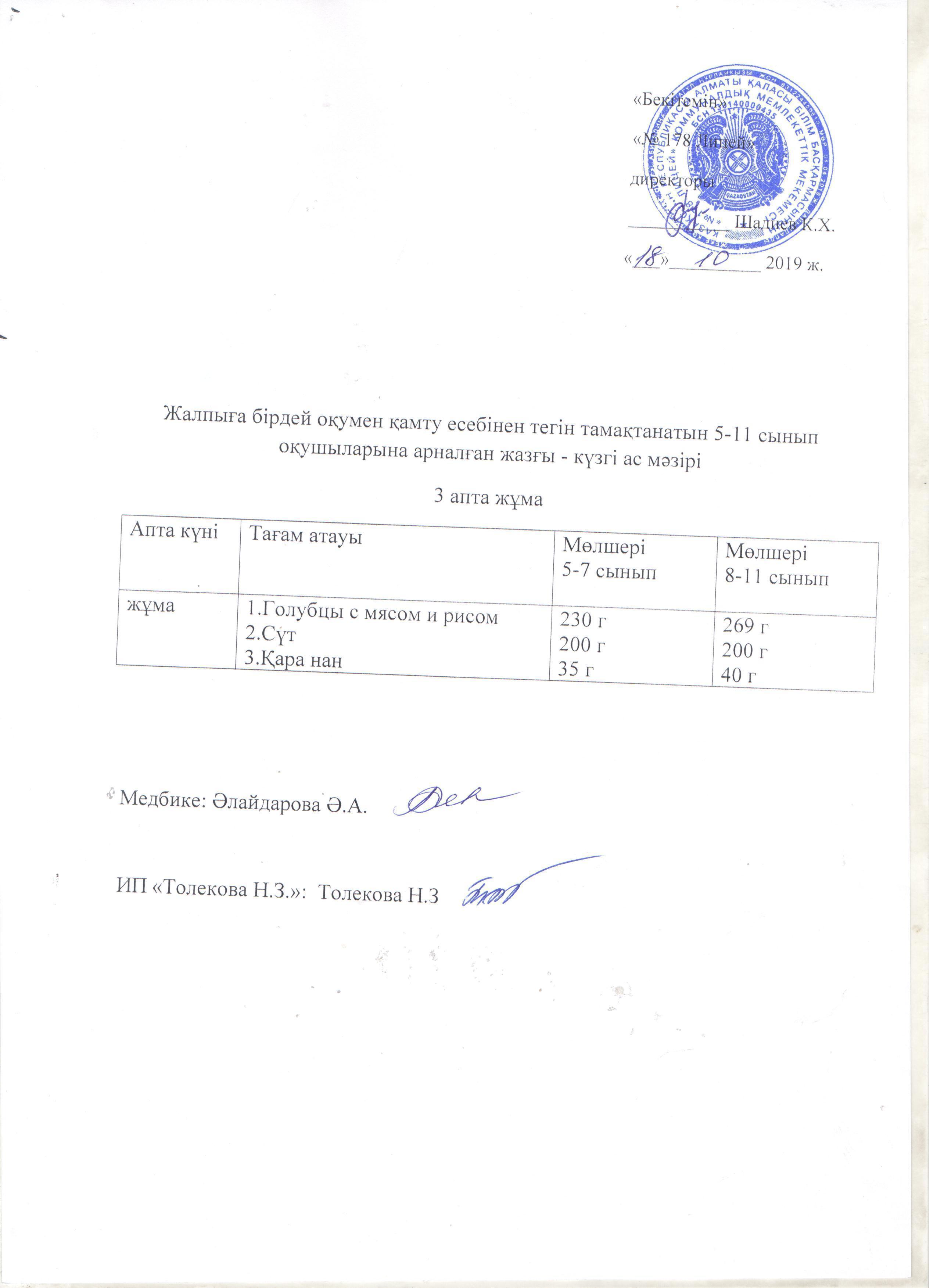 Ас мәзірі - 18.10.2019 жыл
