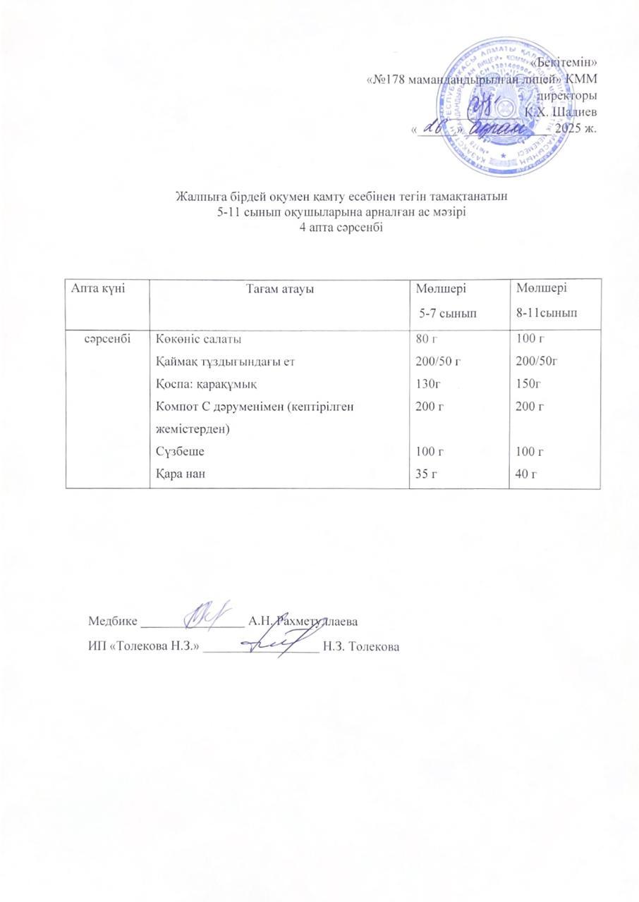 Ас мәзірі - 25.02.2025 жыл