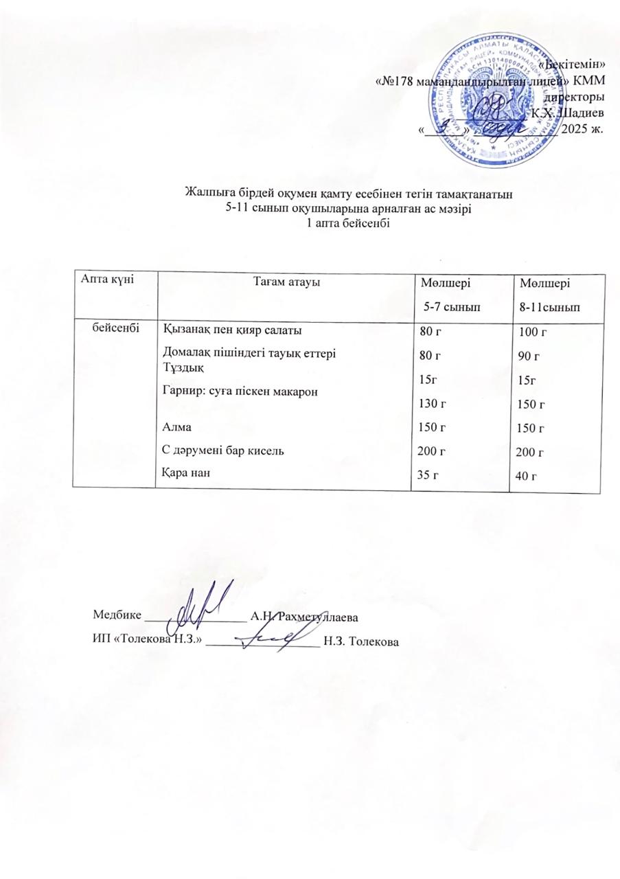 Ас мәзірі - 01.04.2025 жыл
