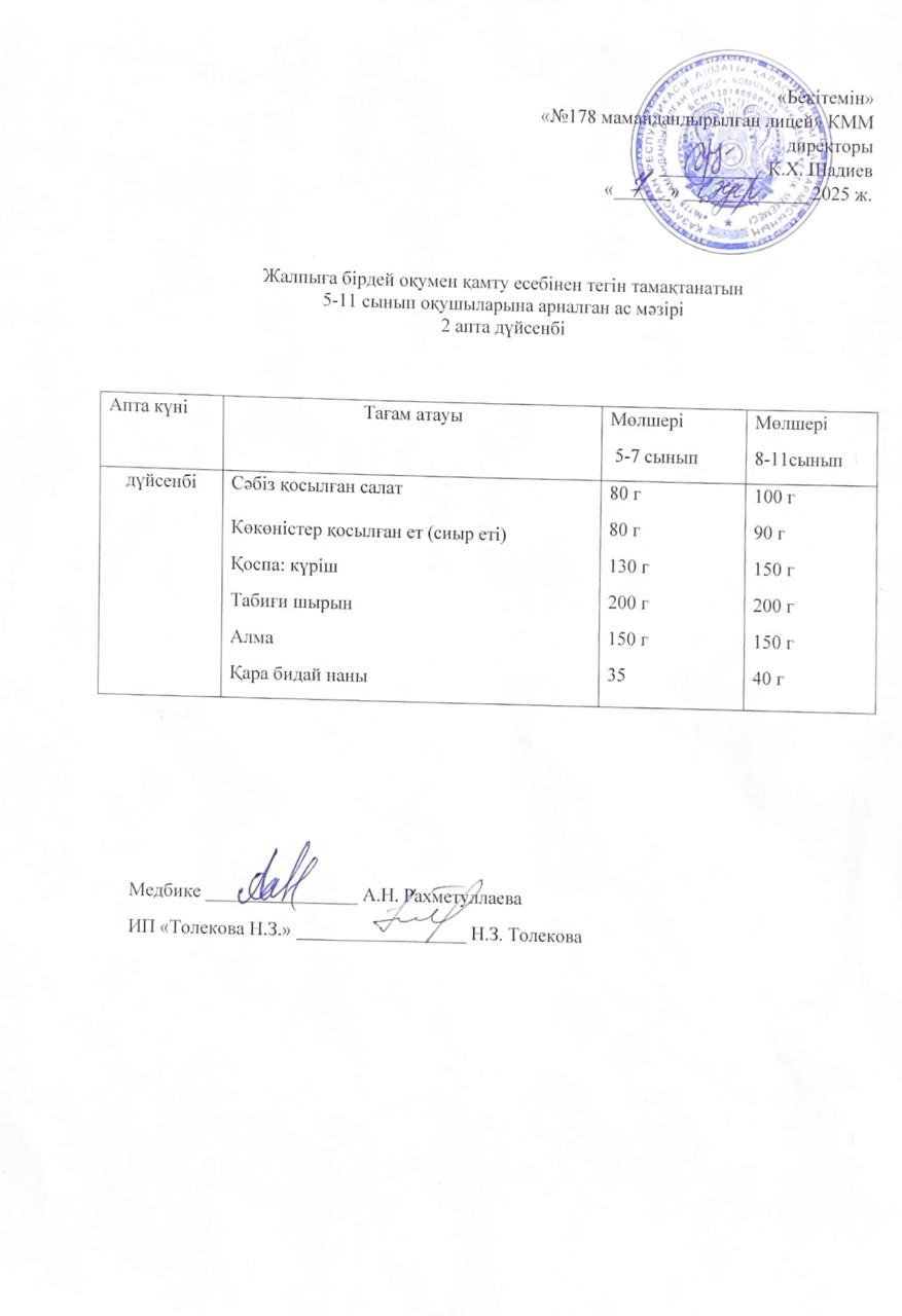 Ас мәзірі - 01.04.2025 жыл