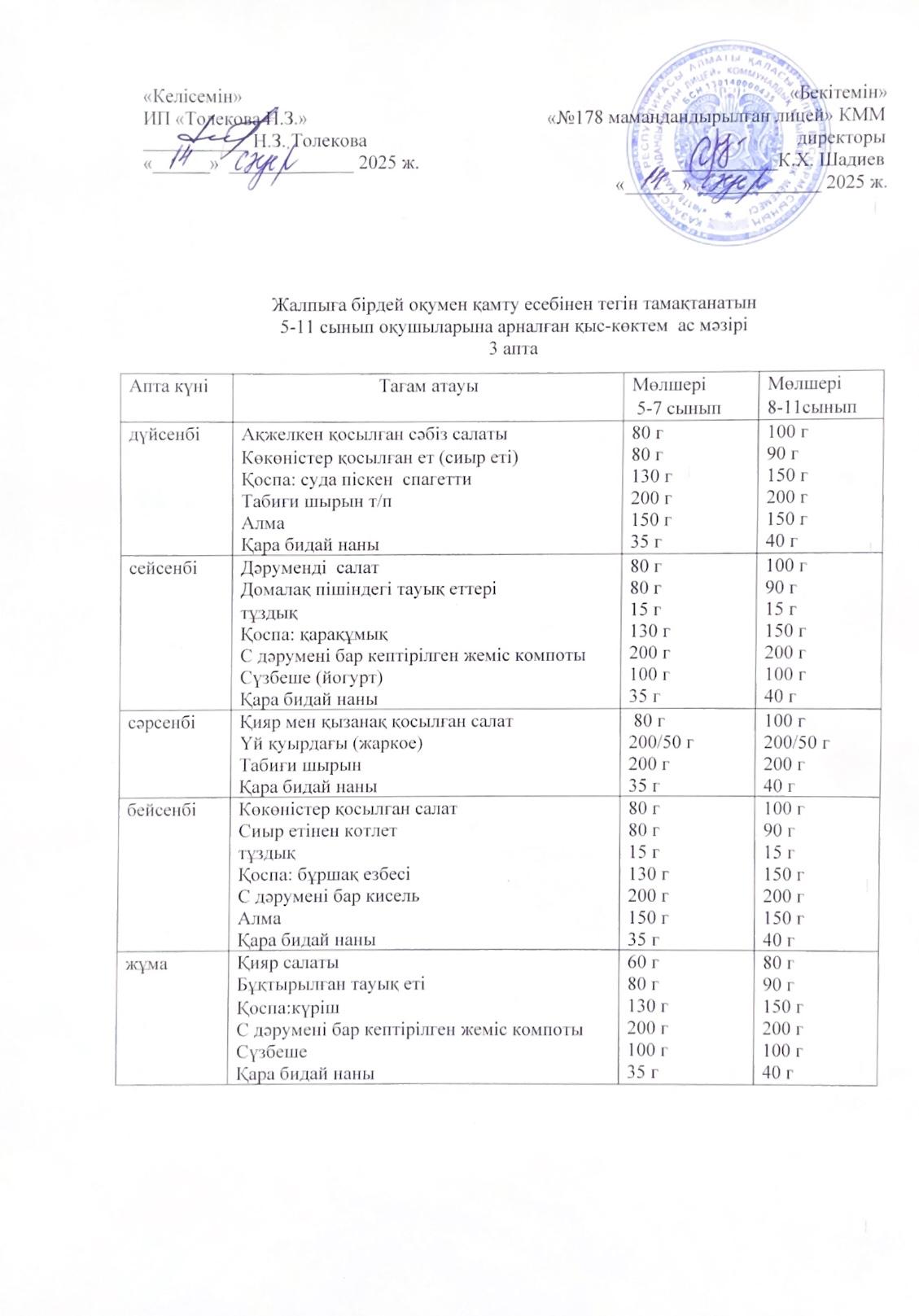 Ас мәзірі - 01.04.2025 жыл