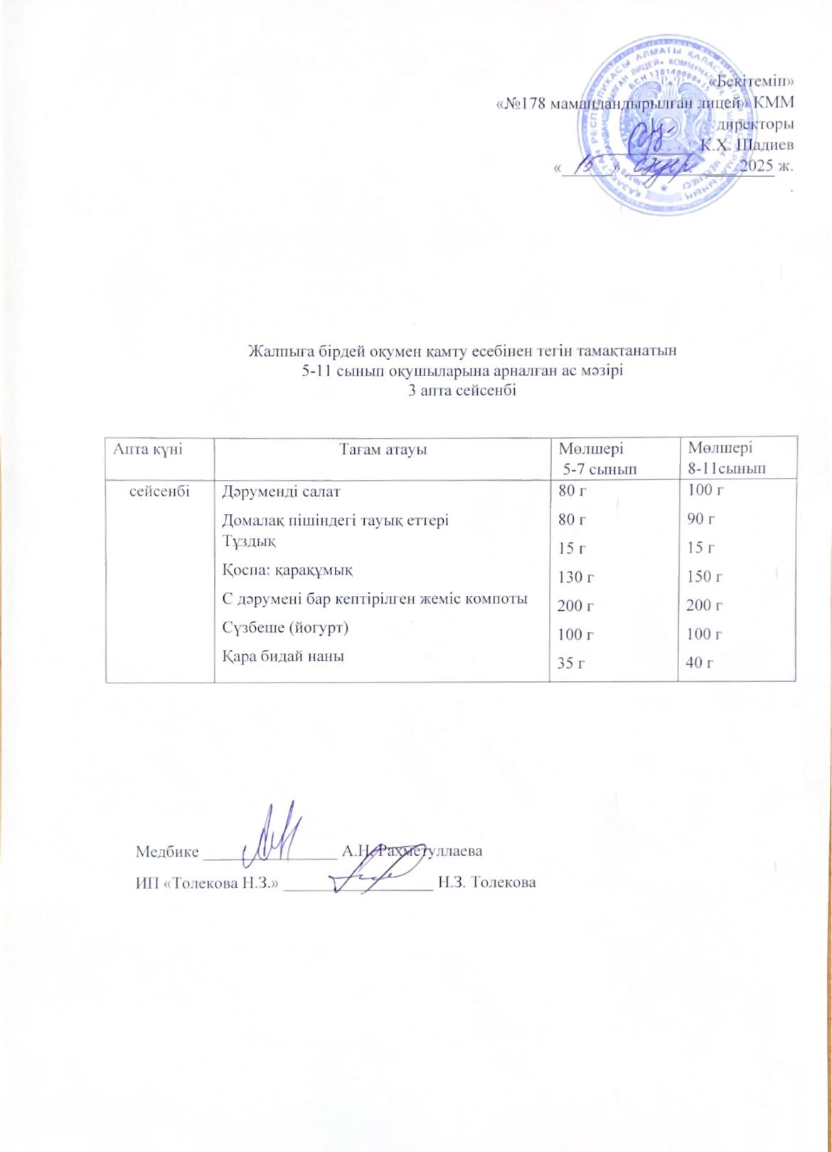 Ас мәзірі - 15.04.2025 жыл