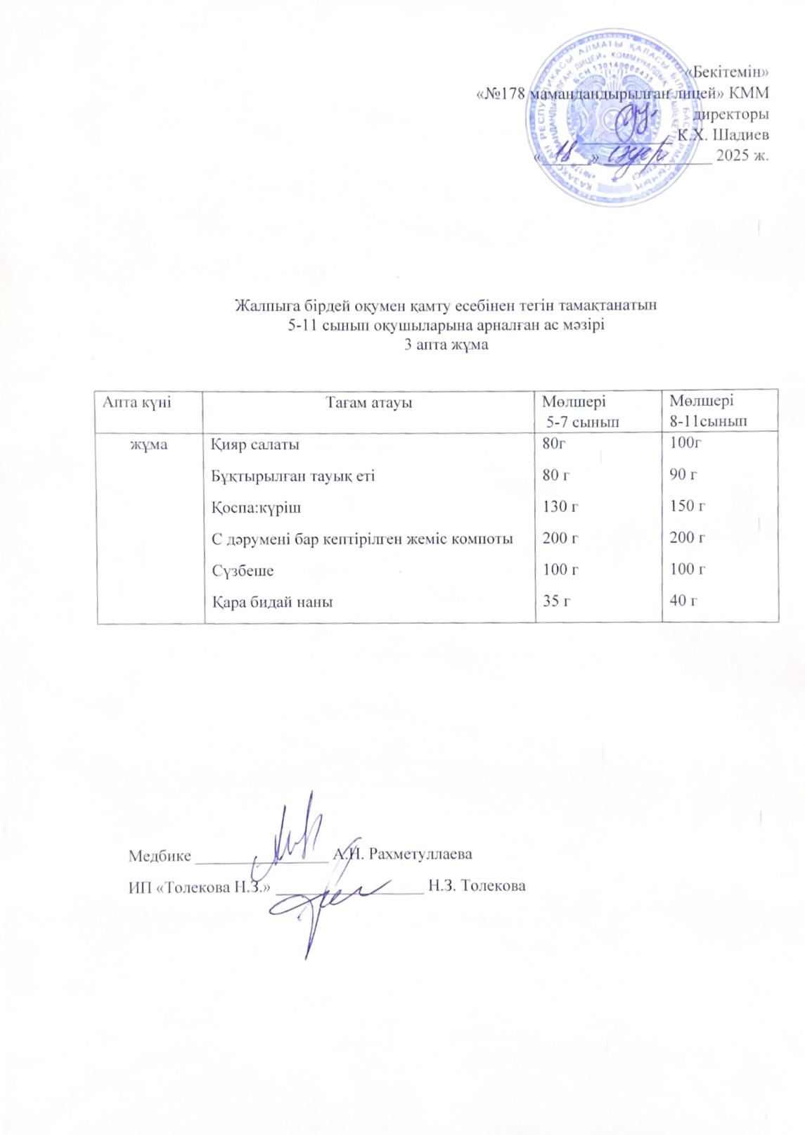 Ас мәзірі -03.02.2025 жыл