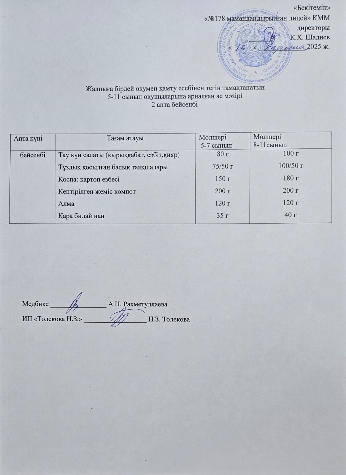 Ас мәзірі - 06.10.2025 жыл