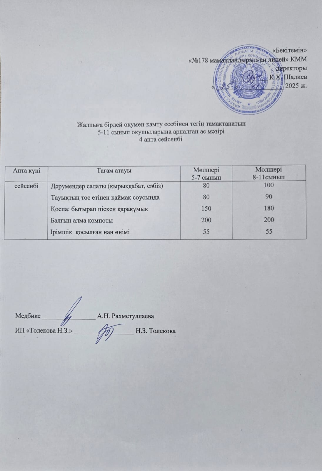 Ас мәзірі - 25.11.2025 жыл