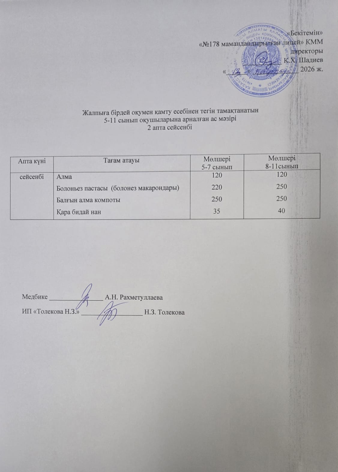 Ас мәзірі - 12.01.2026 жыл
