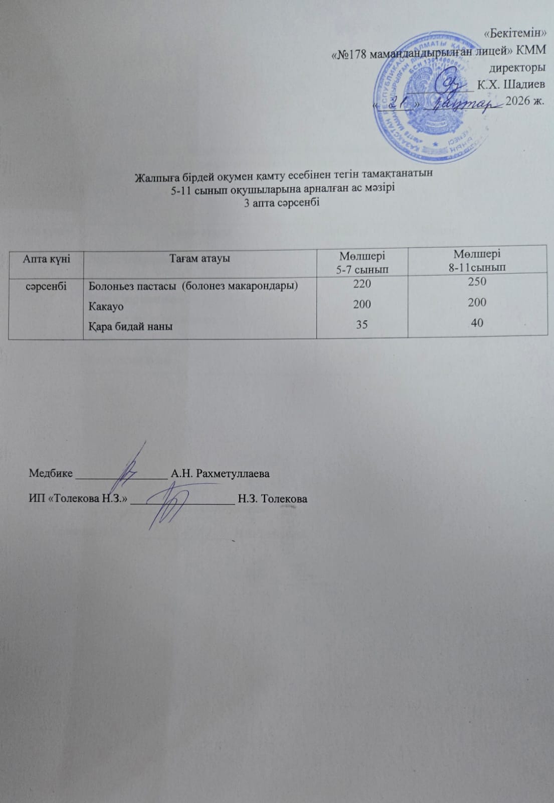 Лицей асханасының тамақтану сапасына мониторинг жүргізу актісі