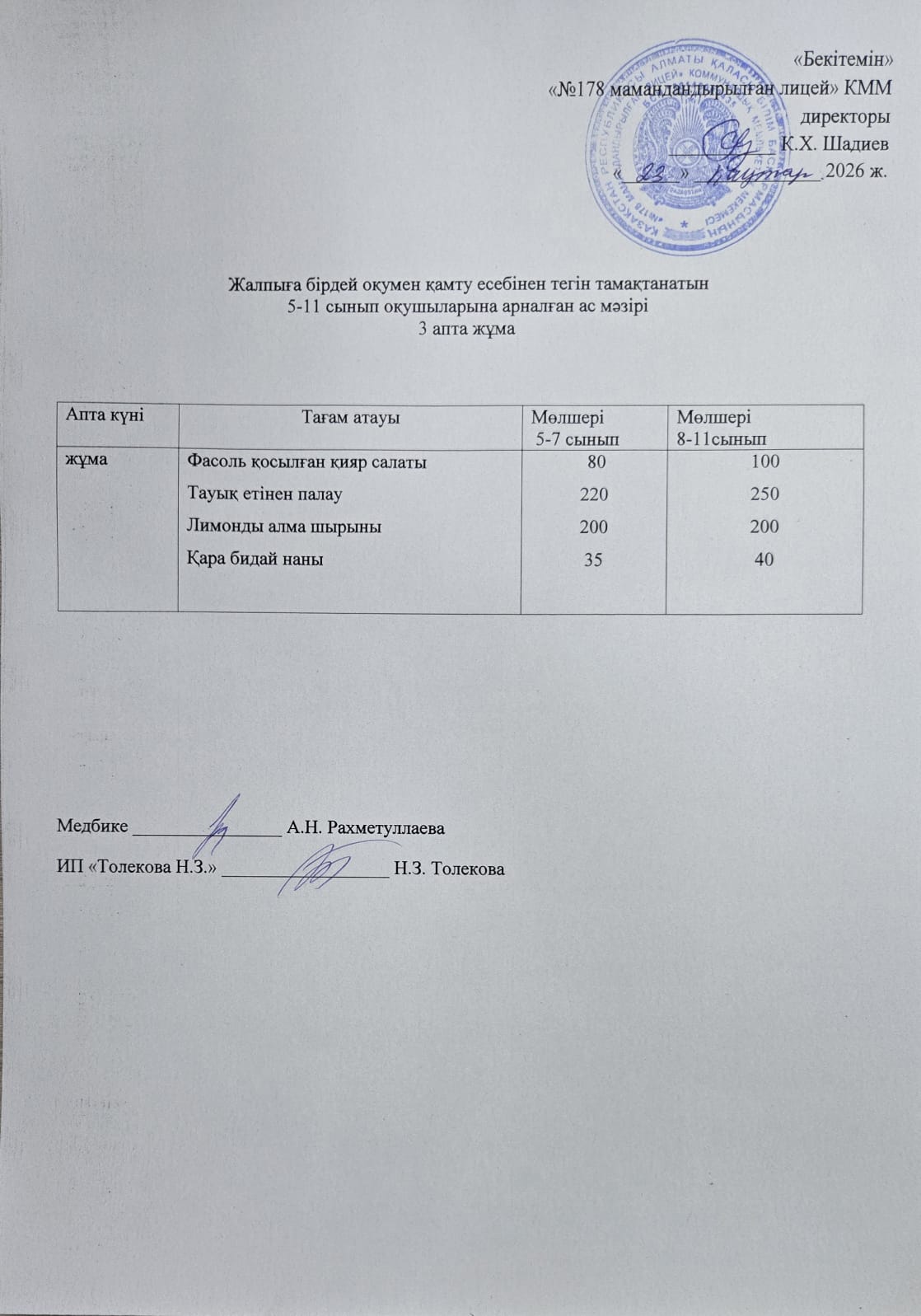 Лицей асханасының тамақтану сапасына мониторинг жүргізу актісі