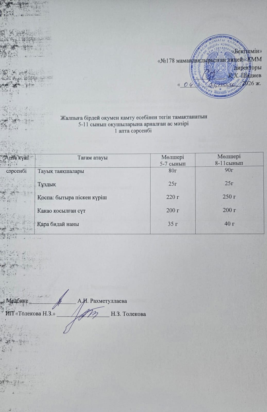 Ас мәзірі - 04.02.2026 жыл