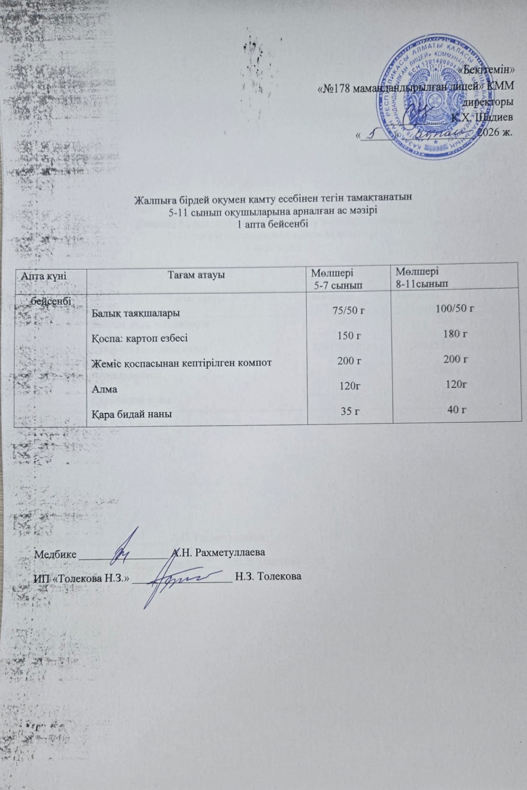 Ас мәзірі - 12.01.2026 жыл
