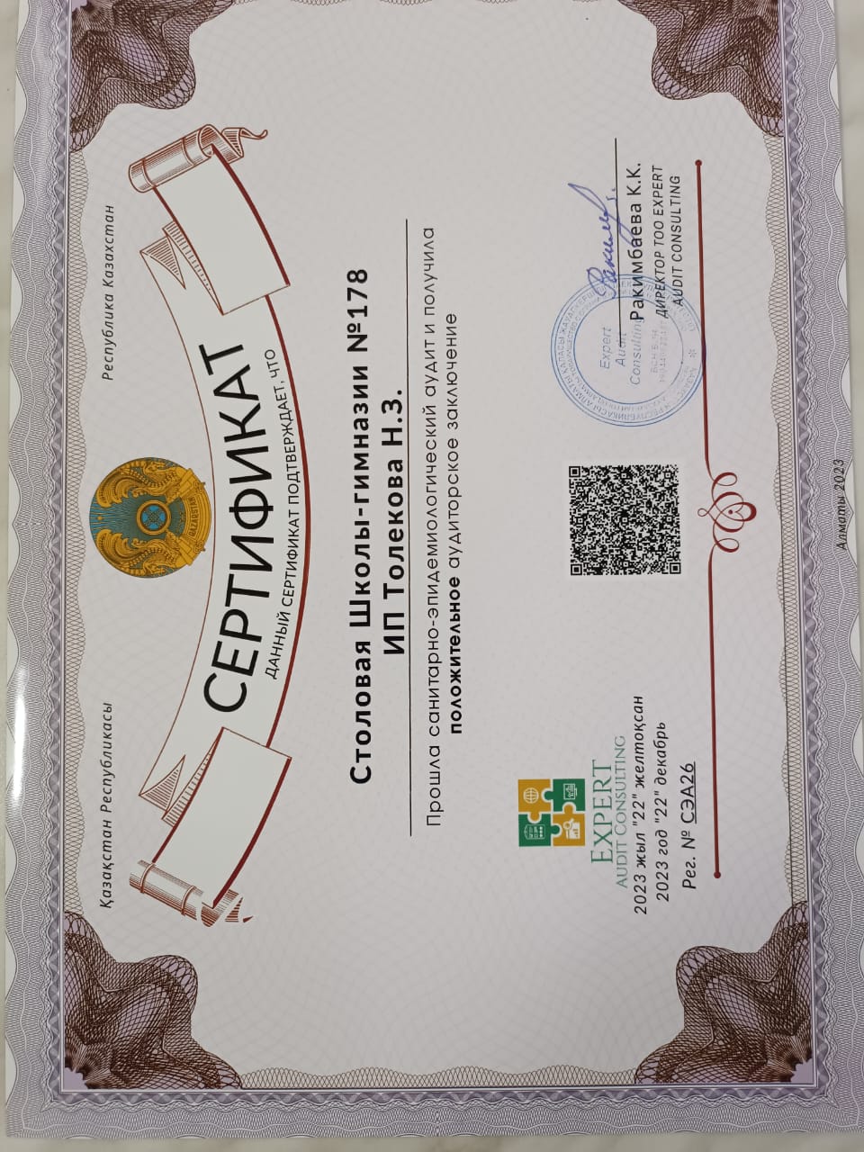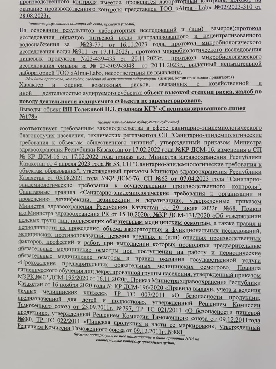 23 январь 2023 0 1 2 3 4 5 Санитарлық-эпидемиологиялық аудит қортындысы Осы беттің QR-коды:QR-код этой страницы: