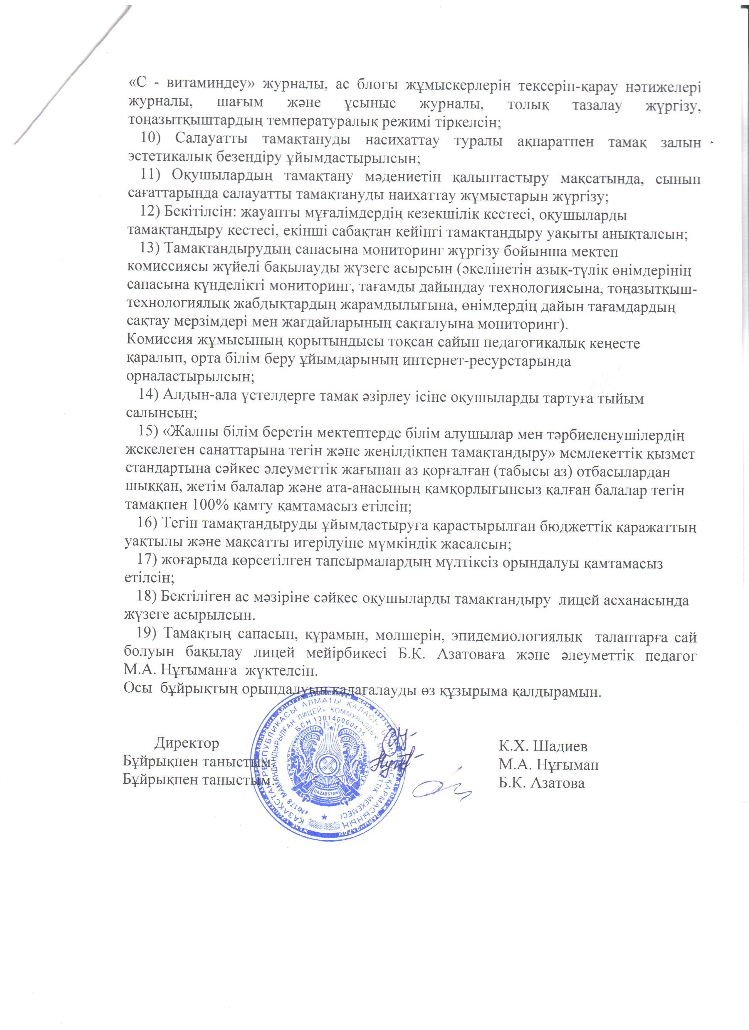 06 январь 2023 0 1 2 3 4 5 Лицей оқушыларын тамақтандыруда сапалы және денсаулыққа қауіпсіз тамақ өнімдерімен қамтамасыз ету туралы бұйрық Осы беттің QR-коды:QR-код этой страницы: